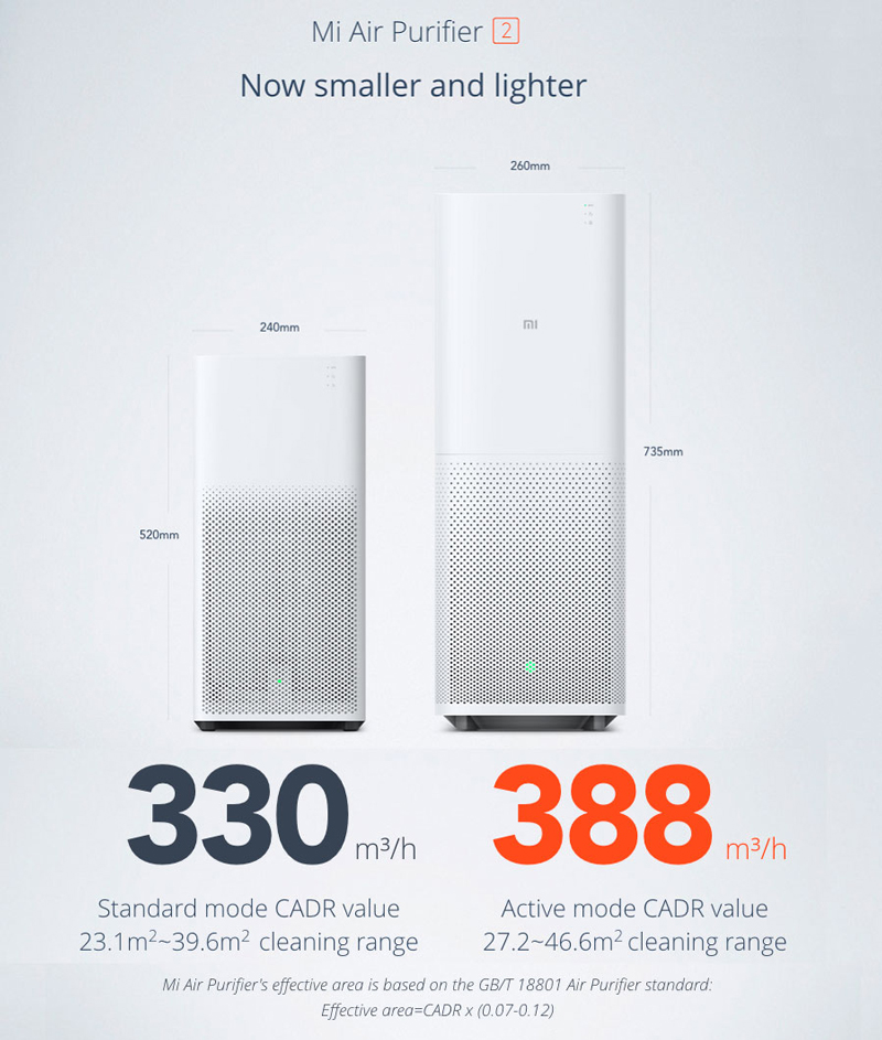 Площадь, которую занимает Mi Air Purifier 2, не достигает и размера листа А4