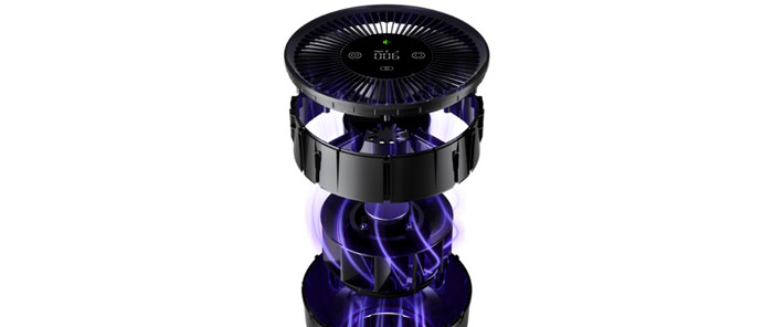Верхняя часть очистителя также оснащена светодиодным экраном с сенсорными кнопками, поддерживающими отображение различных параметров очистителя: оценка текущего качества воздуха в помещении, индекс свежести, предупреждение о пыльце, индикатор PM2.5 и т.д.