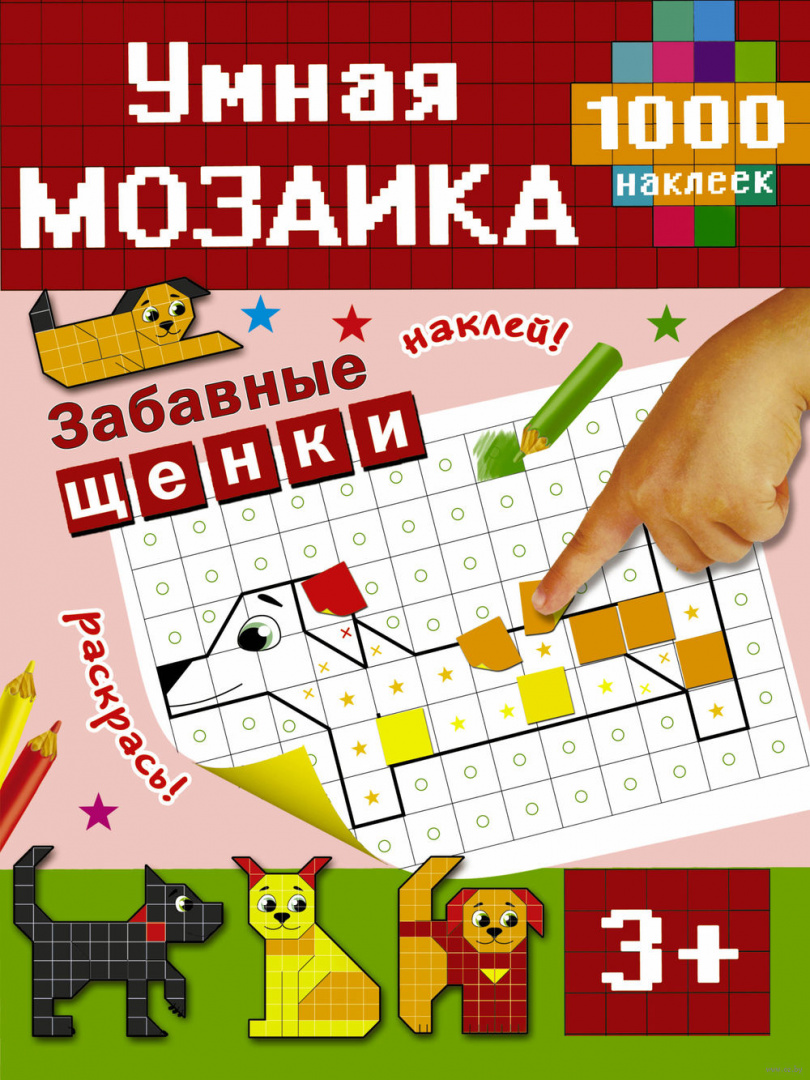 В книжке-раскраске «Забавные щенки» ребёнок сможет создавать необычные пиксельные картинки. На каждой странице книги юный художник найдёт образец рисунка. Заполняя геометрическими наклейками и раскрашивая клеточку за клеточкой, он сможет своими руками создать картинки забавных щенков.