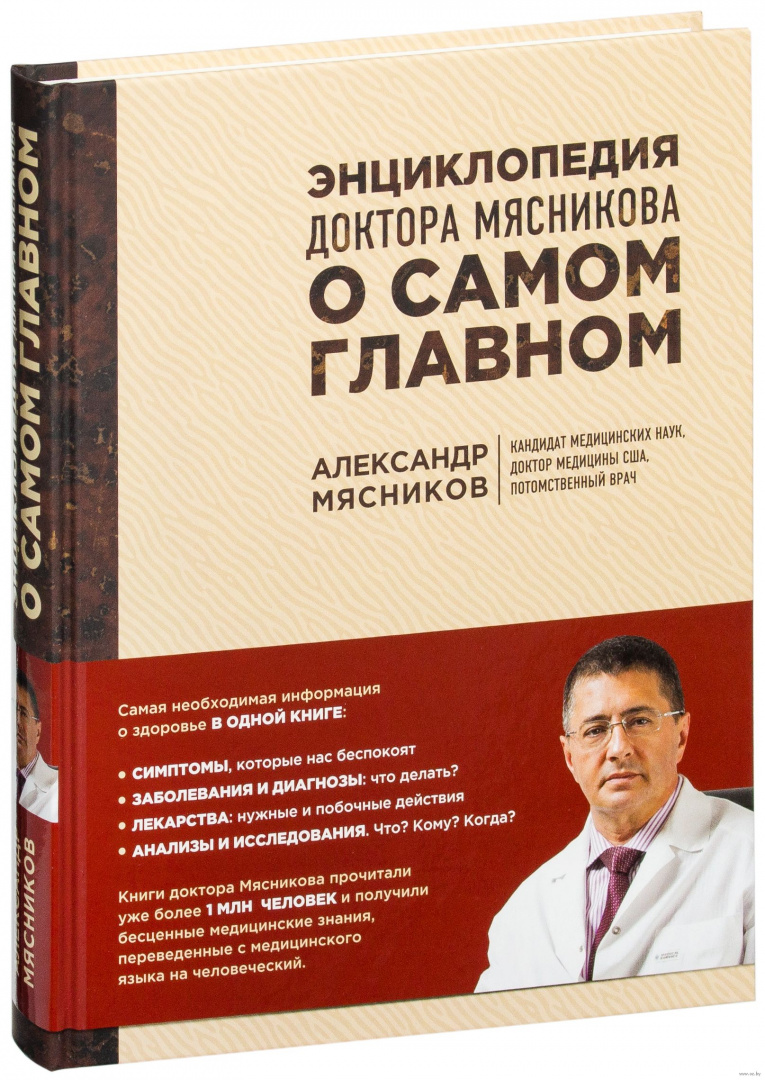 Книги доктора Мясникова прочитали уже более 1 млн. человек и получили бесценные медицинские знания, переведенные с медицинского языка на человеческий. В энциклопедию вошла обновленная информации из его бестселлеров "Как жить дольше 50 лет: откровенный разговор с врачом о лекарствах и медицине", "О самом главном с доктором Мясниковым", "Русская рулетка: как выжить в борьбе за собственное здоровье" и "Ржавчина": что делать, чтобы сердце не болело".