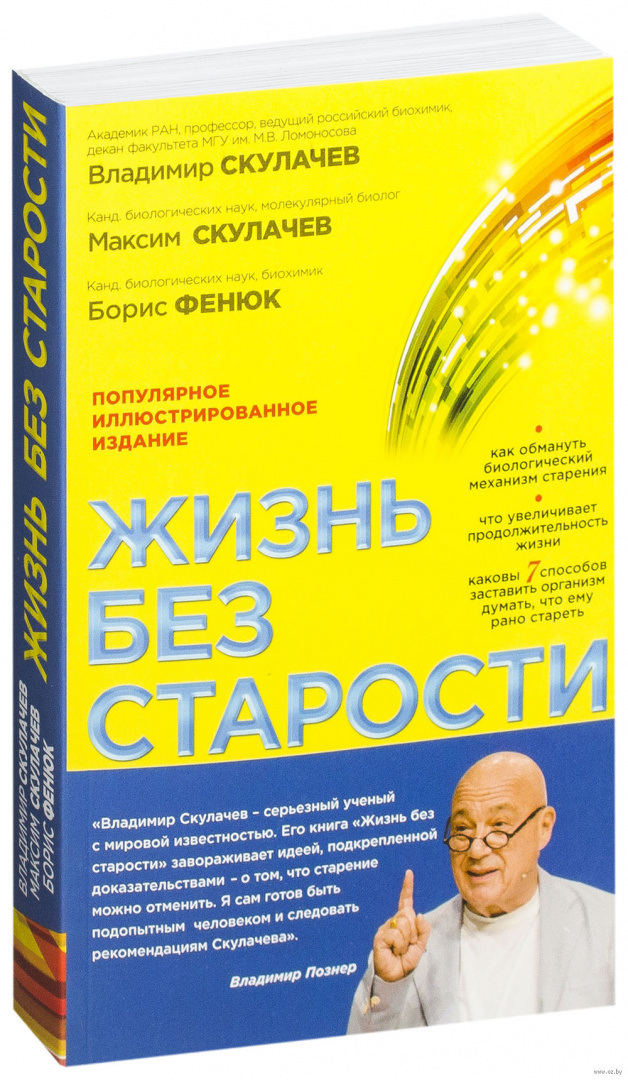Представляя ее, Владимир Познер заявил, что он заворожен идеей, подкрепленной доказательствами, о том, что старение можно отменить, и готов следовать рекомендациям Скулачева. Популярное издание Жизни без старости позволит читателю без специального биологического или медицинского образования представить, как устроена генетическая программа старения, и какие открытия, помогающие ее замедлить, сделал академик Скулачев.