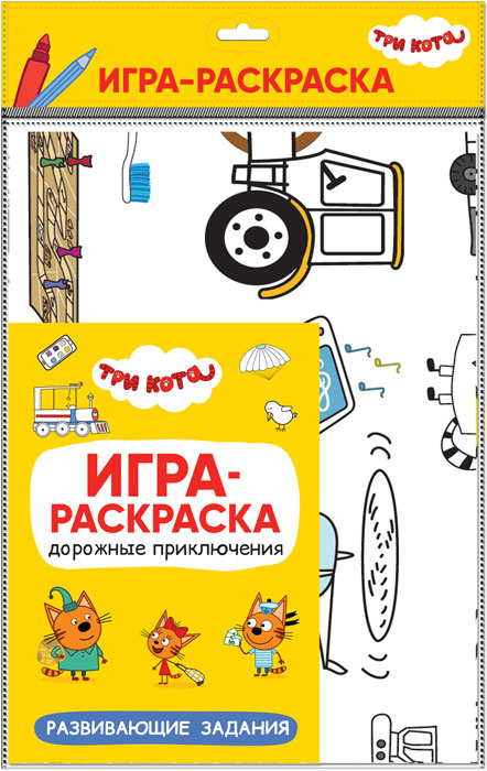 Большая игра-раскраска «Дорожные приключения» серии «Три кота. Игра-раскраска» посвящена видам наземного и воздушного транспорта, который встречается в популярном мультфильме «Три кота». В методических рекомендациях вас ждут веселые задания и игры для детей от 2 до 6 лет на тему транспорта. Полотно из непромокаемого материала объединяет в себе множество функций: это и огромная раскраска, и плакат для рассматривания, и скатерть, и необычное развивающее пособие. Интересный детский досуг обеспечен в любом месте — дома, на природе или на празднике.