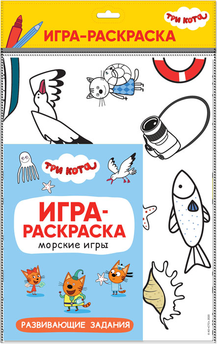 Большая игра-раскраска «Морские игры» серии «Три кота. Игра-раскраска» сделана по мотивам одноименной серии популярного мультфильма «Три кота». В той серии котята устроили водные игры… в ванной! А в раскраске мы вместе с Коржиком, Карамелькой и Компотом устроим водные игры на пляже. В методических рекомендациях вас ждут веселые игры и задания для детей от 2 до 6 лет на тему кораблей, морских обитателей и пляжных игр. Полотно из непромокаемого материала объединяет в себе множество функций: это и огромная раскраска, и плакат для рассматривания, и скатерть, и необычное развивающее пособие. Интересный детский досуг обеспечен в любом месте — дома, на природе или на празднике.