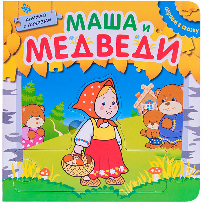 В книге «Маша и медведи» серии «Играем в сказку» ребенок найдет семь картинок-пазлов, которые можно вытащить из плотных картонных страничек и собрать в цепочку.