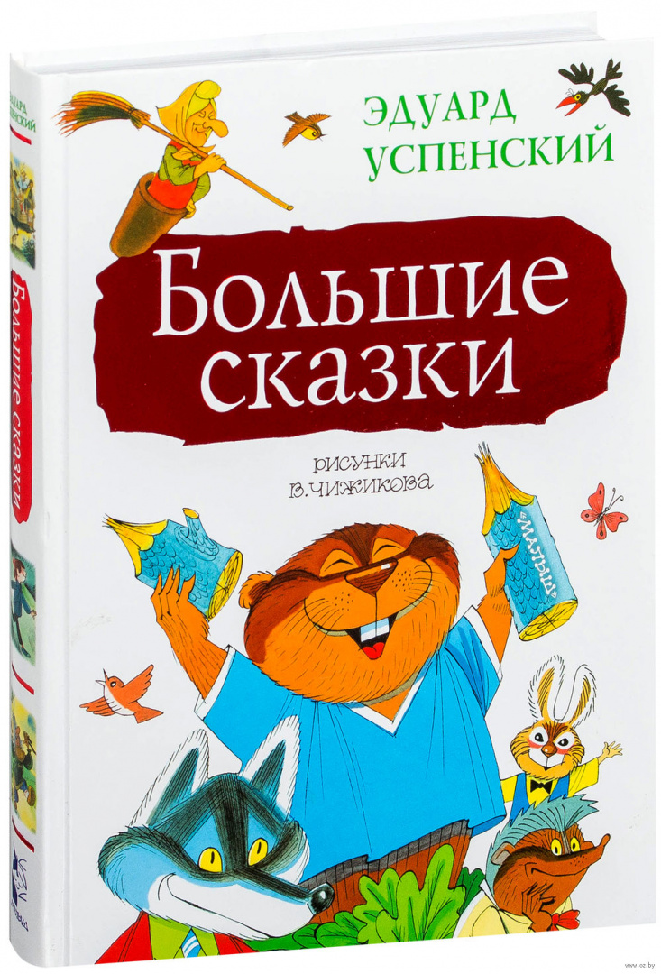 В книгу "Большие сказки" вошли две сказочные повести Э. Успенского: "Меховой интернат" и "Вниз по волшебной реке". Рисунки к ним сделал народный художник России Виктор Чижиков. Одна из этих историй написана в стиле русских народных сказок, в ней вы встретите и Бабу Ягу, и Кощея Бессмертного, и многих других героев русского фольклора. Другая - повесть о детях из обычной московской школы, которые неожиданно сталкиваются с детьми из иной цивилизации.