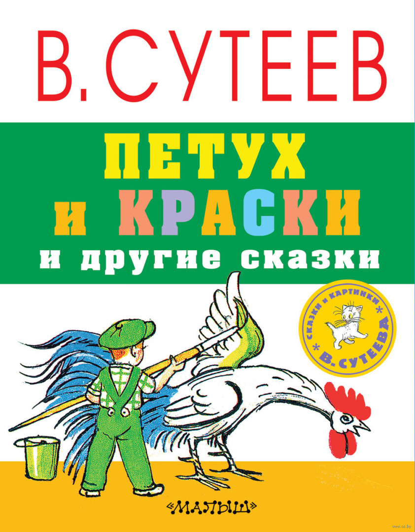 "Петух и краски и другие сказки" - книга знаменитого художника-сказочника В. Г. Сутеева, про которого ходят легенды, например, что одной рукой он писал, а другой рисовал.