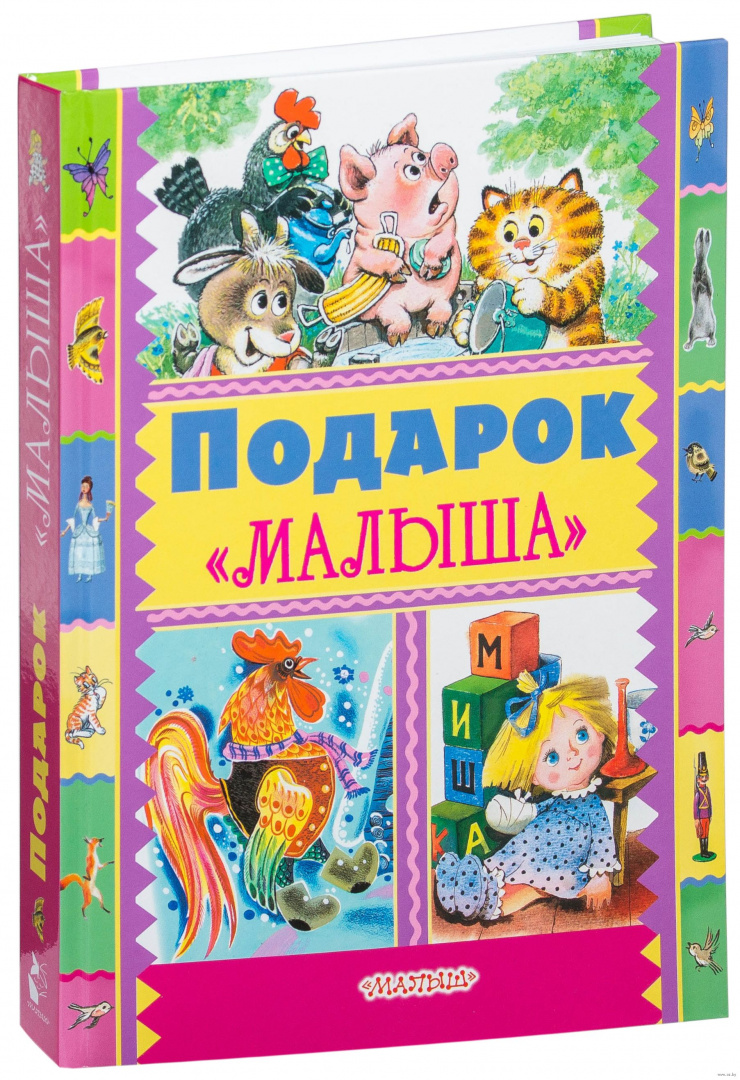 В книге "Подарок "Малыша" сказки классиков детской литературы К. Чуковского, С. Маршака, С. Михалкова, А. Барто, Э. Успенского и других. А также русские народные сказки, проиллюстрированные лучшими художниками детской книги, работавшие на протяжении многих лет в издательстве "Малыш". Книга "Подарок "Малыша" выходит в свет в год 60-летия старейшего книжного издательства.