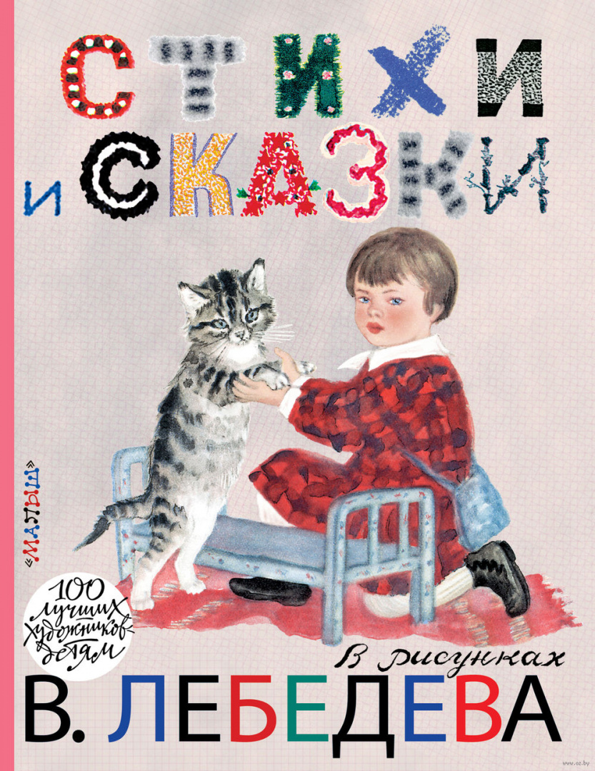 Книга "Сказки и стихи в рисунках В.В. Лебедева" собрала лучшие произведения для детей с выдающимися рисунками Владимира Васильевича Лебедева (1891 – 1967) – живописца, признанного мастера плаката, основателя ленинградской школы книжной графики и собственной "лебедевской школы". Сказка "Слонёнок" Р. Киплинга в переводе К.И. Чуковского с иллюстрациями мастера впервые вышла в свет в 1922 году, цикл стихотворений С.Я. Маршака "Разноцветная книга" в 1947 году, сказка Л.Н. Толстого "Три медведя" в 1948 году.