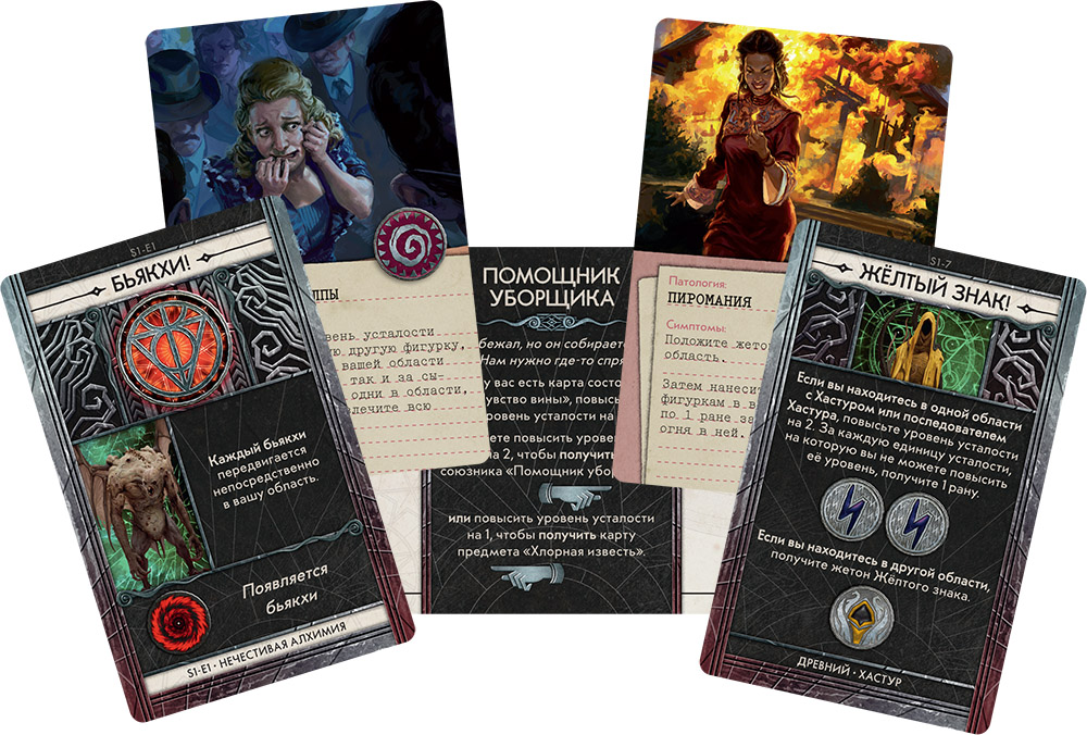 Игра содержит шесть различных сценариев и двух Древних, которым вы сможете бросить вызов: это Хастур, Король в жёлтом, и, конечно, Ктулху! Каждый сценарий предлагает оригинальное приключение, которое можно разыграть с любым Древним. Таким образом, у вас получается двенадцать уникальных сочетаний: сценарий задаёт свою карту игрового поля (здесь оно модульное), содержит описание конкретного ритуала, который нужно прервать, а также его последствий; описание двух дополнительных действий для сыщиков; содержит набор карт находок, Мифов и т. д. Древние отличаются культистами и монстрами, с которыми предстоит столкнуться сыщикам; своей силой и особенностями.