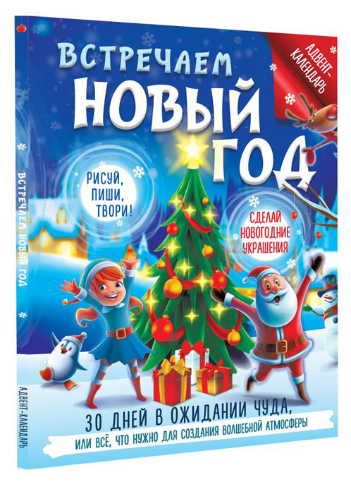 "Встречаем Новый год. Адвент-календарь. 30 дней в ожидании чуда, или всё что нужно для создания волшебной атмосферы" – это адвент-календарь с интересными новогодними заданиями для малыша на каждый день. Ребёнок научится делать новогодние игрушки из бумаги, сможет пройти запутанные снежные лабиринты, украсит вкусную новогоднюю выпечку и выполнит ещё много-много праздничных заданий. Будет очень весело!