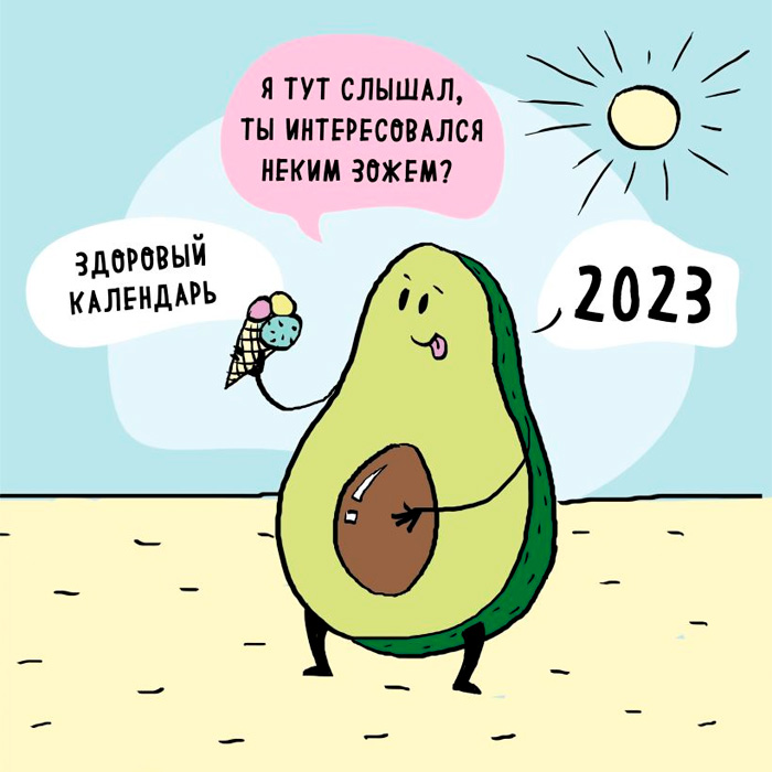 А это — специальный календарь для всех зожников! Хардкорные тренировки, подъемы на пробежку в 6 утра и апельсины вместо конфет — эти и другие жизненные ситуации разделят с вами герои календаря от художницы Карины Илиопуло.