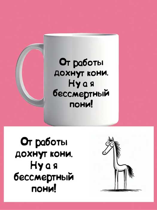 Кружка От работы дохнут кони. Ну а я бессмертный пони!
