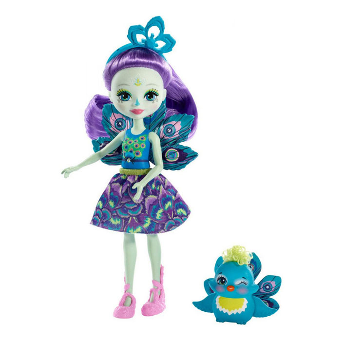 Окунись в мир чудес с куклой Пэттер Павлина и Флэп и ее маленьким другом – Флэп! Пэттер имеет особую связь с ее милым другом-зверюшкой. Они всегда вместе, и даже похожи! Пэттер гордится своими яркими перышками. Кукла (15 см) одета в яркую одежду с изысканными узорами, которая прекрасно подчеркивает ее модную натуру. Стильный головной убор и туфли, напоминающие крылья, полностью дополняют ее волшебный образ. Придумывай прически с ее длинными волнистыми волосами, которые так ей к лицу. У нее с Флэпом одинаково прекрасные павлиные хвостики. Флэп очарует вас своим пышным хвостиком с яркими перышками и желтым хохолком. Детям понравится играть с этими милыми друзьями и создавать свои собственные приключения в мире Enchantimals!