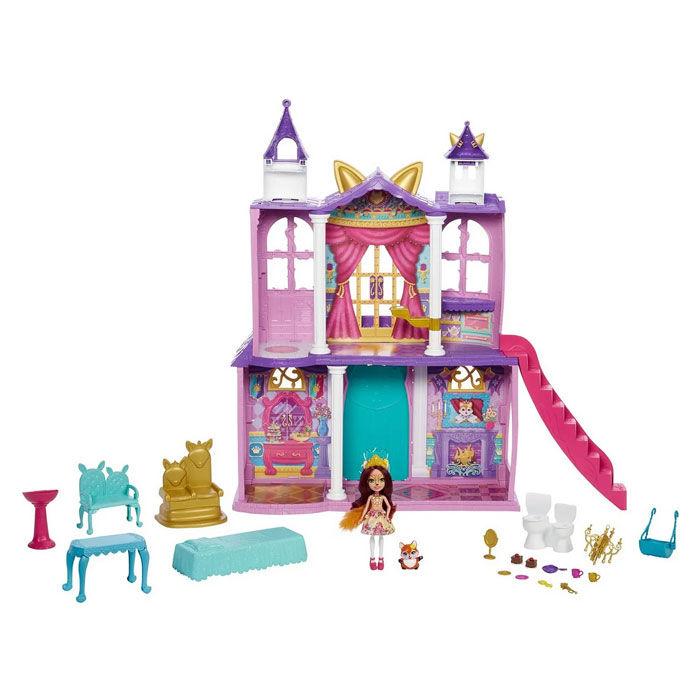 Этот дворец мечты, который содержит несколько игровых зон и достигает 66 см в высоту, наполнен сказочным весельем. В набор входят кукла Лисичка Фелисити и ее подружка Флик в королевском одеянии, а также мебель и аксессуары, с которыми можно разыгрывать самые разнообразные истории.