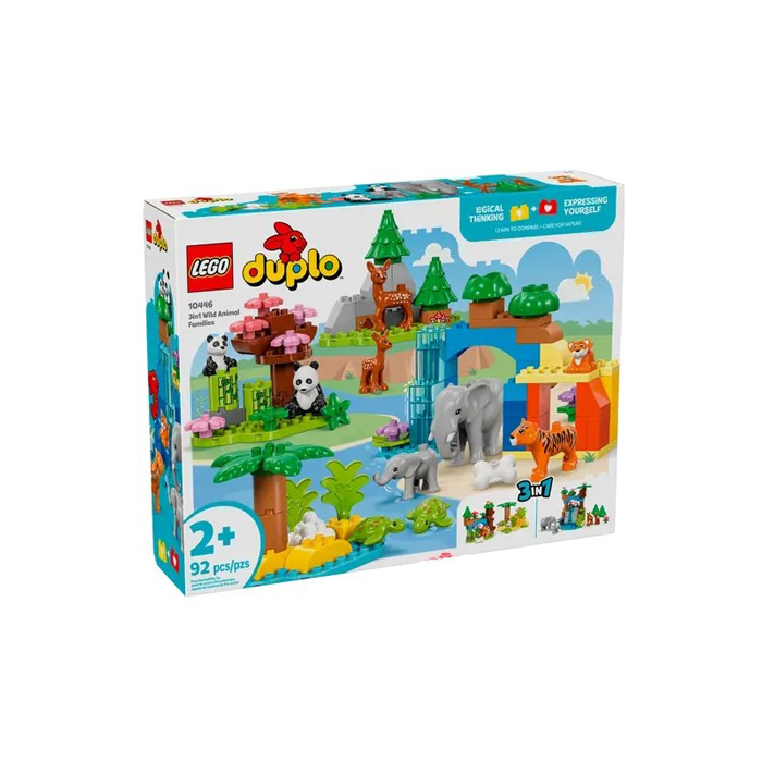 Набор «Семьи диких животных» 3-в-1 (10446) — это 10 фигурок животных и три красочные локации в одной коробке для детей от 2 лет.