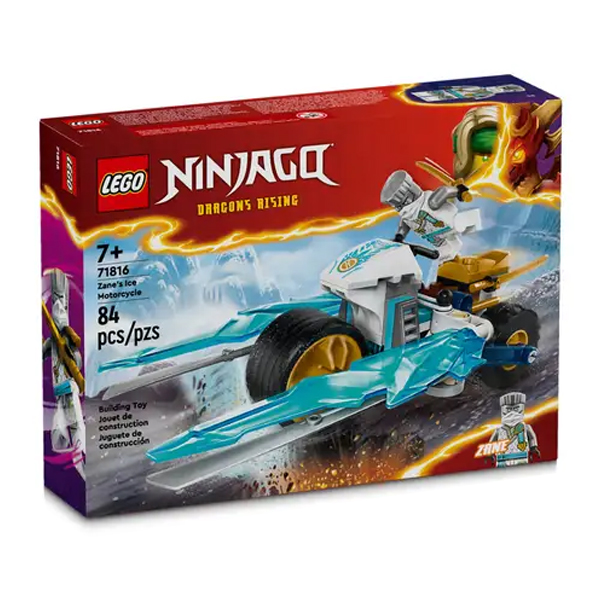 Игрушка LEGO® NINJAGO® Zane's Ice Motorcycle (71816) позволяет мальчикам и девочкам в возрасте от 7 лет и старше воссоздавать стремительные действия из 2-го сезона телешоу NINJAGO Dragons Rising. Эта игрушка ниндзя для детей включает в себя мотоцикл NINJAGO с движущимися колесами, золотыми лезвиями и подвеской на задней шине. Когда дети нажимают на шину, с обеих сторон раскладываются крутые ледяные лезвия для атаки. Эта впечатляющая приключенческая игрушка поставляется с минифигуркой Зейна, которая едет сзади на мотоцикле. Зейн одет в свои никогда ранее не виданные турнирные доспехи и держит 2 аксессуара для катаны для бесчисленных часов ролевых игр в мире NINJAGO.