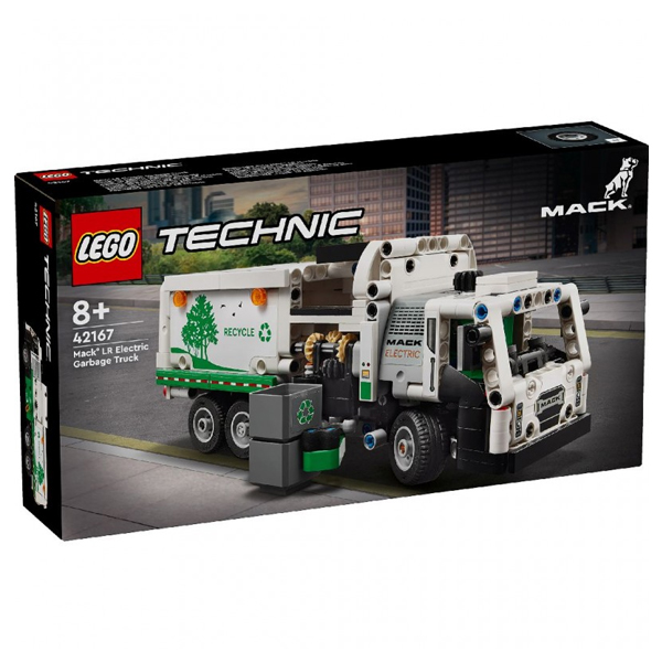 Этот мусоровоз из серии LEGO Technic отличается точными движениями и впечатляющими функциями. Двери открываются, и транспортным средством можно управлять с помощью шестерни сверху. Как и модель большого размера, электрический мусоровоз LEGO Technic Mack LR оснащен боковым погрузчиком, который может захватывать, поднимать и опорожнять мусорные баки.