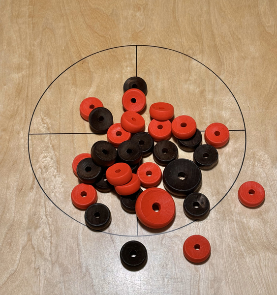 ✔ 32 игровые пешки (16 черных и 16 красных)