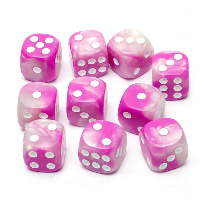 Набор кубиков D6 STUFF-PRO (10 шт., 16 мм, нефритовые) белый розовый