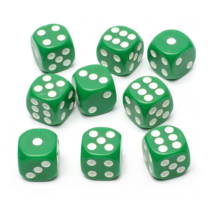 Набор кубиков D6 STUFF-PRO (10 шт., 16 мм, стандарт) зелёный