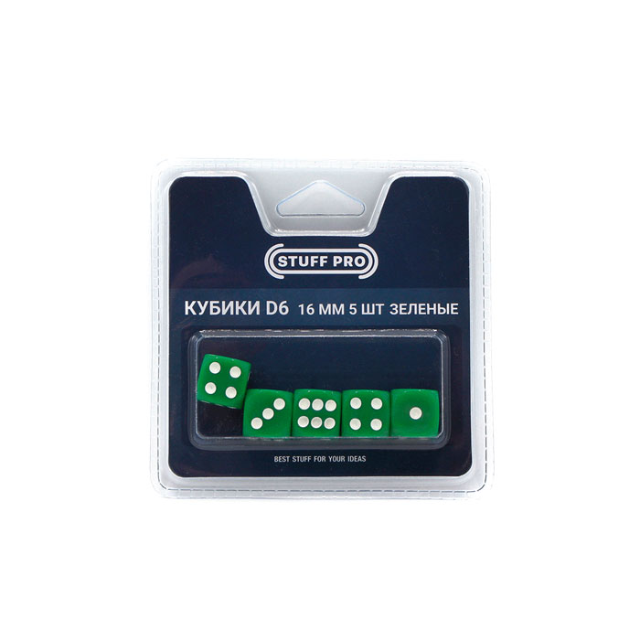 Набор кубиков D6 STUFF-PRO (5 шт., 16 мм) зеленый