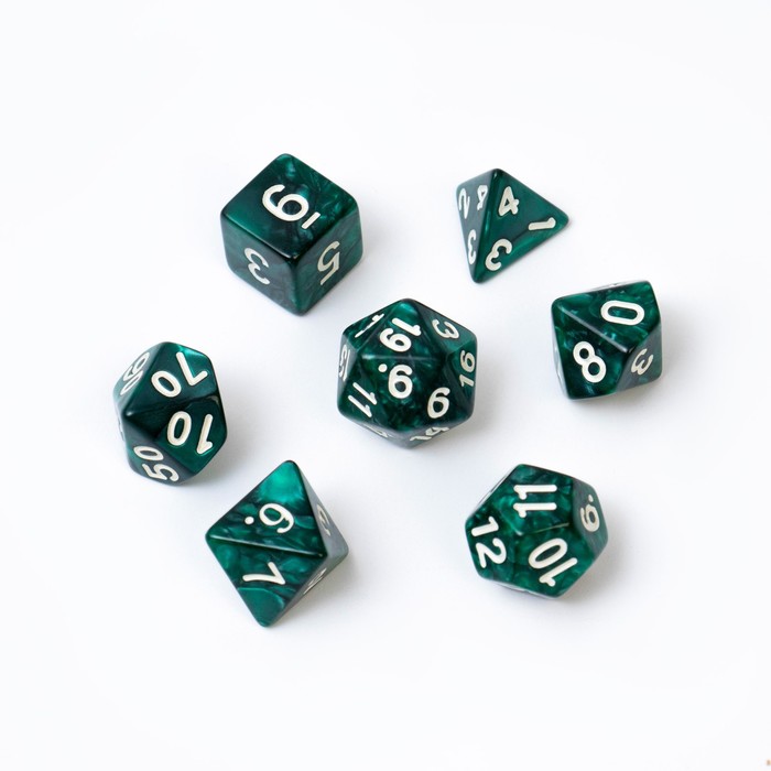 Кубики выполнены в стильном темно-циановом цвете и имеют уникальный дизайн граней, который соответствует стандартам D&D.
