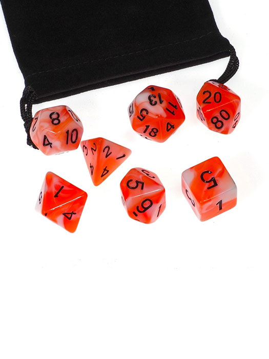 Набор кубиков для ролевых игр STUFF PRO 7 шт. с мешочком. Оранжево-белый