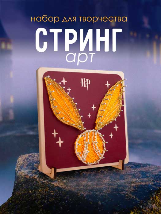 Стринг арт для детей – увлекательный творческий набор. Создайте свой коллаж! Серия по мотивам книги Гарри Поттер и Философский камень включает в себя 6 наборов: Магические буквы, Распределяющая шляпа, подарочный набор Гарри Поттер Волшебник, Снитч, Сова Букля, Крылатый ключ. Повесить постер Гарри Поттер – это обычно. Объёмные панно на стену из нитей сделают комнату ребенка или подростка особенной.