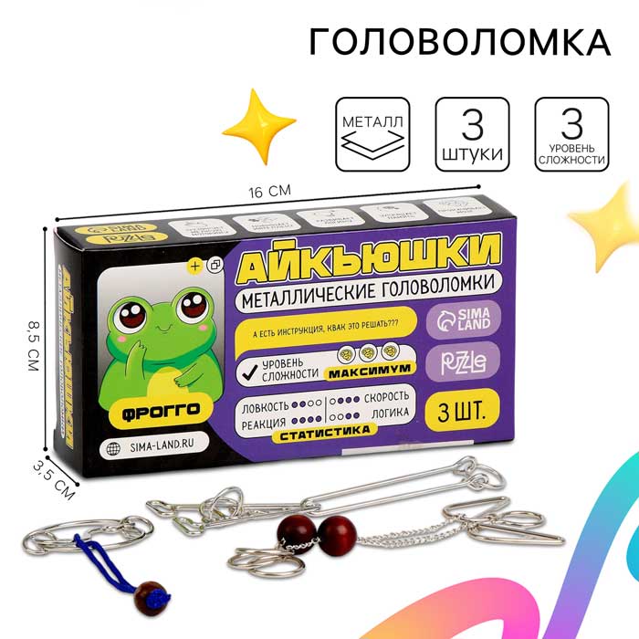 Металлические головоломки «Фрогго» — это увлекательный набор для любителей логических задач. В комплекте представлены три головоломки, которые заставят размышлять, анализировать и находить нестандартные решения. Такой формат отлично подходит как для детей, так и для взрослых, ведь тренировка ума полезна в любом возрасте.