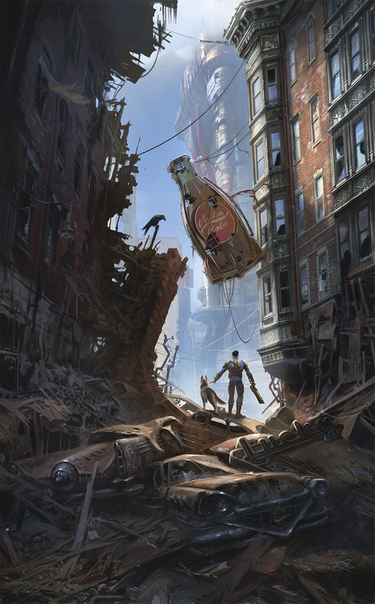 Игры серии Fallout рассказывают о мире, погрязшем в радиации и насилии. Винтажная Америка 60-х годов прошлого столетия, которая пошла по иному пути развития: домашние Роботы-Помощники с независимым Искусственным Интеллектом, подстригающие идеальные зелёные лужайки; запах домашнего яблочного пирога и умиротворяющая музыка, изредка прерываемая рёвом военных винтокрылов. Человечество научилось использовать атомную энергию в мирных целях: атомные двигатели и портативных реакторы; боевые машины и мирные роботы, доступные в угоду человеку; техника на грани фантастики.