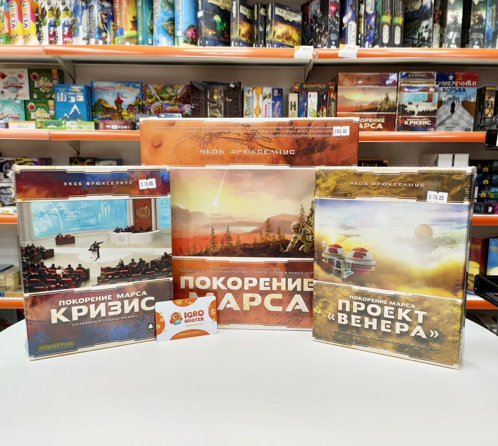 Купить настольную игру «Покорение Марса» с дополнениями в Минске можно в нашем магазине в ТЦ Немига, 3, цокольный этаж, пав. 44. А также через интернет-магазин igromaster.by с доставкой по Минску курьером, почтой по РБ. И вперед на просторы красной планеты!