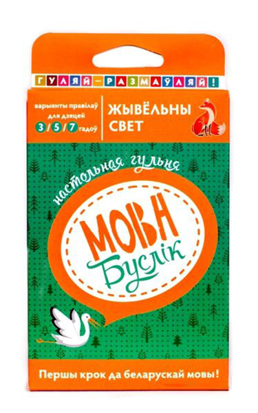 Настольная игра “Мова. Буслік. Жывёльны свет” даёт возможность познакомиться с дикими и домашними животными и птицами или закрепить их беларуские названия. Четверть представленных здесь слов – уникальные. Знаете, кто такие “Гіль“ и “Шуляк”? Интереса для играющих добавят яркие картинки и разные варианты правил игры.