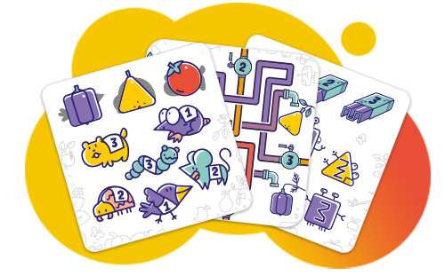 В игре используется семь типов заданий и кубик с дополнительными условиями. Эти элементы делают игру вариативной и надолго удерживают интерес детей. Задания ориентированы на логическое и пространственное мышление, скорость реакции и быстрый счёт. Увлекательная игровая механика «X-фермы» помогает весело развивать эти навыки в кругу семьи!