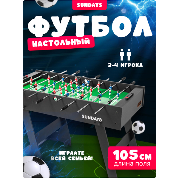 Настольный футбол GT-14105 – увлекательная игра для двух игроков, которая позволяет провести время весело и активно. Игра способствует развитию координации и реакции, а также дарит множество положительных эмоций. Корпус стола выполнен из МДФ с ПВХ-ламинатом, что обеспечивает прочность и долговечность конструкции. Зеленый и черный цвета придают столу стильный и современный вид, который украсит любое помещение.