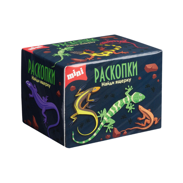 Попробуйте отыскать ящерку в этом наборе для раскопок! Специально для маленьких археологов – мини-вариант раскопок с ящерками. Пусть вас не смущает размер бруска – в нем обязательно спрятана ящерица и россыпь цветных камней. Если брусок покажется вам твердым – рекомендуется смочить его водой.