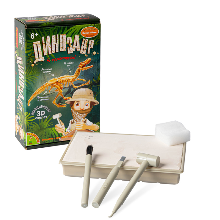 Набор для опытов от Bondibon ДИНОЗАВР ВЕЛОЦИРАПТОР 3D скелет позволяет детям проводить археологические раскопки и пополнять собственную коллекцию экзотических артефактов, не покидая комнаты!