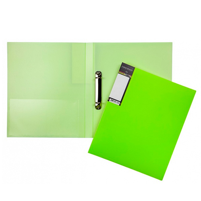 Папка пластиковая на двух кольцах с флюоресцентной обложкой серии Diamond Neon представлена в ультрамодном неоновом цвете, предназначена для хранения документов, является незаменимым помощником как в учебе, так и в работе. Изготовлена из качественного пластика, папка на всем протяжении срока службы остается ровной и аккуратной. Кольцевой механизм надежно держит документы и файлы. На сменной этикетке на корешке можно написать информацию о владельце или о содержимом папки.