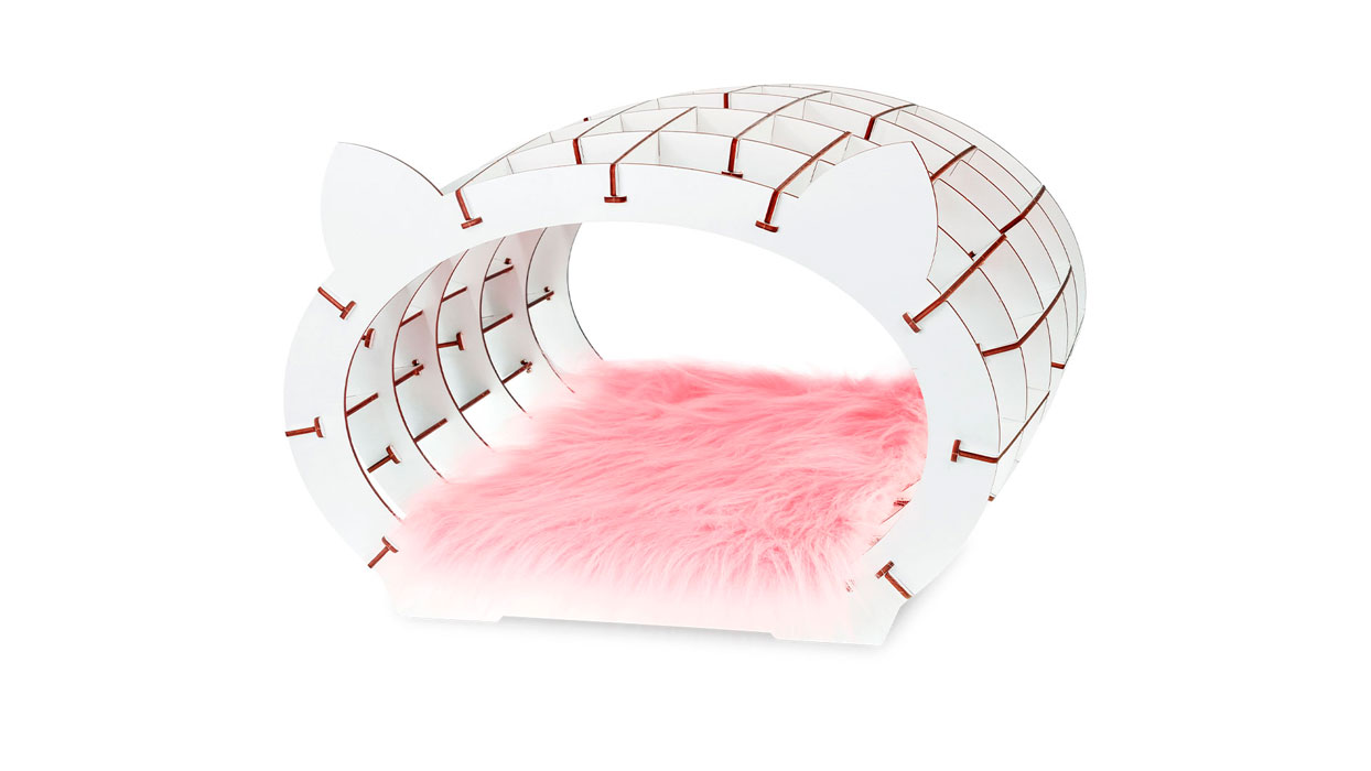 Конструктор деревянного домика для кошки – «Кошкин дом» белый каркас (розовый мех)