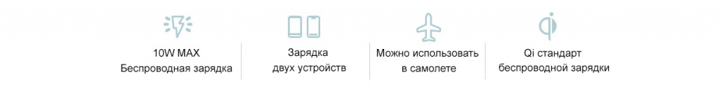 | Дополнительная информация | Емкость: 37Wh 3.7V (10000mAh). Номинальная емкость: 5800mAh (5V/2.4A). Input 5V/3A, 9V/2A, 12/1.5A. Output 10W max (wireless) 5V/2.4A, 9V/2A, 12V/1.5A 18W max (wired). Расстояние зарядки: ≤5мм. Время зарядки: около 4 ч (9V/2A или 12V/1.5A зарядка), около 6 ч (5V/2A зарядка). |