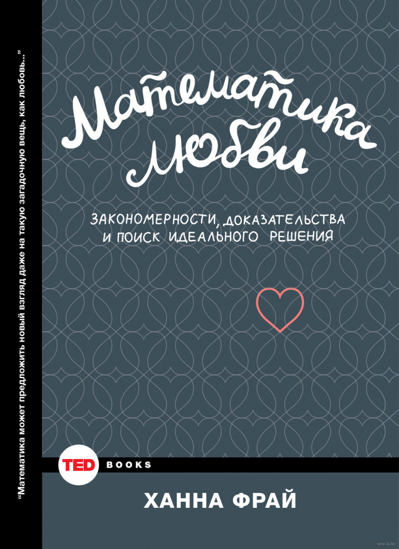 Доктор Ханна Фрай - математик, один из пионеров математического анализа поведения человека. "Математика любви" - результат ее исследований в области человеческих отношений и сексуальности. Оказывается, самые непредсказуемые наши эмоции вполне можно описать строгим языком уравнений, а успех первого свидания можно обеспечить с помощью безошибочных математических формул!