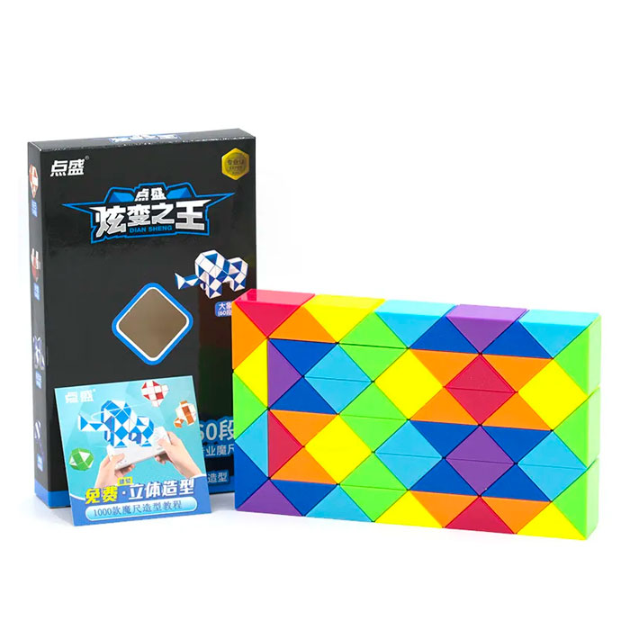 Змейка Рубика – полюбившаяся многим, головоломка из детства, изобретение Эрно Рубика (создатель классического кубика Рубика) с ее помощью можно собирать различные фигурки: змею, собаку, птицу, шар, сердце и многие другие оригинальные поделки. Раньше змейки имели только два цвета пластика, как правило, белого и синего цвета. Компания DianSheng не остановилась на обычной змейке, а сделала новую оригинальную и яркую головоломку. Преимуществом данной змейки является качественное исполнение и яркие цвета, с оригинальной формой пластика. Благодаря этой змейке развивается мелкая моторика, пространственное мышление, воображение, а также многие другие навыки, полезные для детей.
