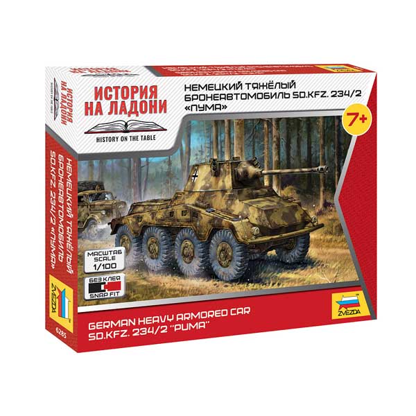 Немецкий тяжелый бронеавтомобиль Sd.Kfz.234/2 «Пума» был создан в 1943 году. «Пума» отличалась от других бронеавтомобилей серии более мощным бронированием (лобовая броня – до 30 мм) и башней от легкого танка «Леопард», с 50-мм орудием, обладавшим хорошей бронепробиваемостью.