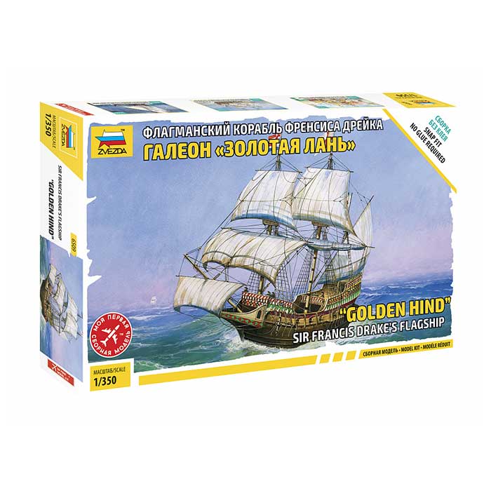 Золотая лань один из шести кораблей Френсиса Дрейка, названный в честь лорда-канцлера Кристофера Хаттона, на гербе которого была изображена золотая лань. Легендарный корабль, сборка без клея, поместится на полках с книгами и рабочих столах.