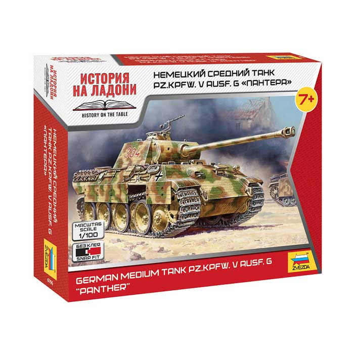 Историческая справка: Разработка танка PzKpfw V "Пантера" была начата в конце 1941 года. В следующем году прототипы прошли испытания, в результате которых был выбран танк, разработанный фирмой MAN. В январе 1943 года танк "Пантера" был запущен в серийное производство, которое продолжалось до самого конца войны. Всего с 1943 по 1945 год было построено чуть менее шести тысяч "Пантер", которые принимали участие в боях как на восточном, так и на западном фронте.