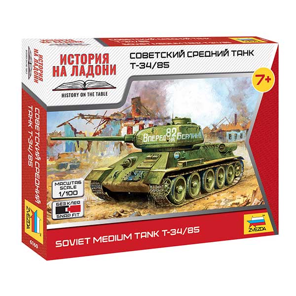Историческая справка: Последняя и самая совершенная модификация танка Т-34 - Т-34/85 (обр. 1944 г.) являлась самой удачной машиной своего класса. Эта машина принимала участие в тяжелейших боях за освобождение Европы и штурме Берлина. С незначительными переделками машины данного типа воевали во Вьетнаме, на Ближнем Востоке и на Территории бывшей Югославии.