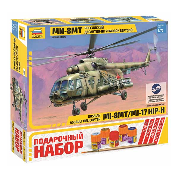 Историческая справка: Ми-8МТ (модернизированный транспортный) - многоцелевой вертолет среднего класса, разработанный в ОКБ М.Л.Миля, модернизированный вариант вертолета Ми-8. Проработка проекта вертолета Ми-8 с увеличенной мощностью двигателей и грузоподъемностью началась в ОКБ М.Л.Миля в 1964 году. Летом 1975 года модернизированный вертолет построили, а 17 августа впервые подняли в воздух. Летные испытания показали значительное улучшение летно-технических характеристик, особенно потолка и скороподъемности. Принятый на вооружение вертолет получил название Ми-8МТ и с 1977 года пошел в серийное производство на Казанском вертолетном заводе. Со следующего года он строился с двигателями ТВЗ-117МТ серии III.
