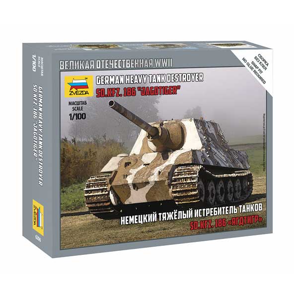 Историческая справка: «Ягдтигр» (нем. Jagdtiger), полное официальное название Panzerjäger Tiger — германская самоходная артиллерийская установка (САУ) периода Второй мировой войны, класса истребителей танков. По германской ведомственной системе обозначений военной техники «Ягдтигр» носил индекс Sd.Kfz.186. «Ягдтигр» был разработан в 1942—1944 годах на шасси тяжёлого танка «Тигр II» и стал самым тяжёлым серийно производившимся образцом бронетехники всех времён.