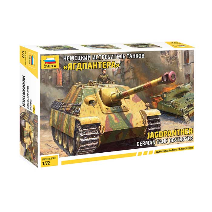 Историческая справка: Немецкий истребитель танков "Ягдпантера" Наряду с созданием среднего танка Т-V "Пантера" был разработан так называемый истребитель танков "Ягдпантера", у которого в неподвижном боевом отделении противоснарядного бронирования была установлена более мощная, чем на танке, артсистема - 88-мм полуавтоматическая пушка с длиной ствола 71 калибр.
