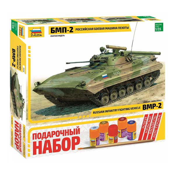 Историческая справка: Машина является усовершенствованной версией БМП-1, она вооружена 30-мм автоматическим орудием, двумя пулеметами ПКТ, противотанковым комплексом и предназначена для перевозки 7 солдат. БМП-2 приспособлена для перевозки по воздуху. Своим ходом может преодолевать водные преграды.