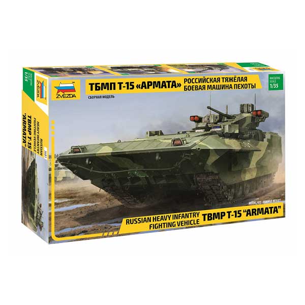 Историческая справка: Т-15 – перспективная российская боевая бронированная машина на базе универсальной гусеничной платформы «Армата». Впервые была продемонстрирована на параде Победы в Москве в 2015 году. БМП Т-15 имеет танковый уровень бронирования и активную защиту Афганит, что позволяет БМП вести бой в одном строю с танками Армата Т-14. Наличие современного ракетного вооружения из ПТРК Корнет и зенитной пушки позволяет эффективно обстреливать как наземные, так и воздушные цели. На сегодня это самая высокозащищённая БМП в мире.